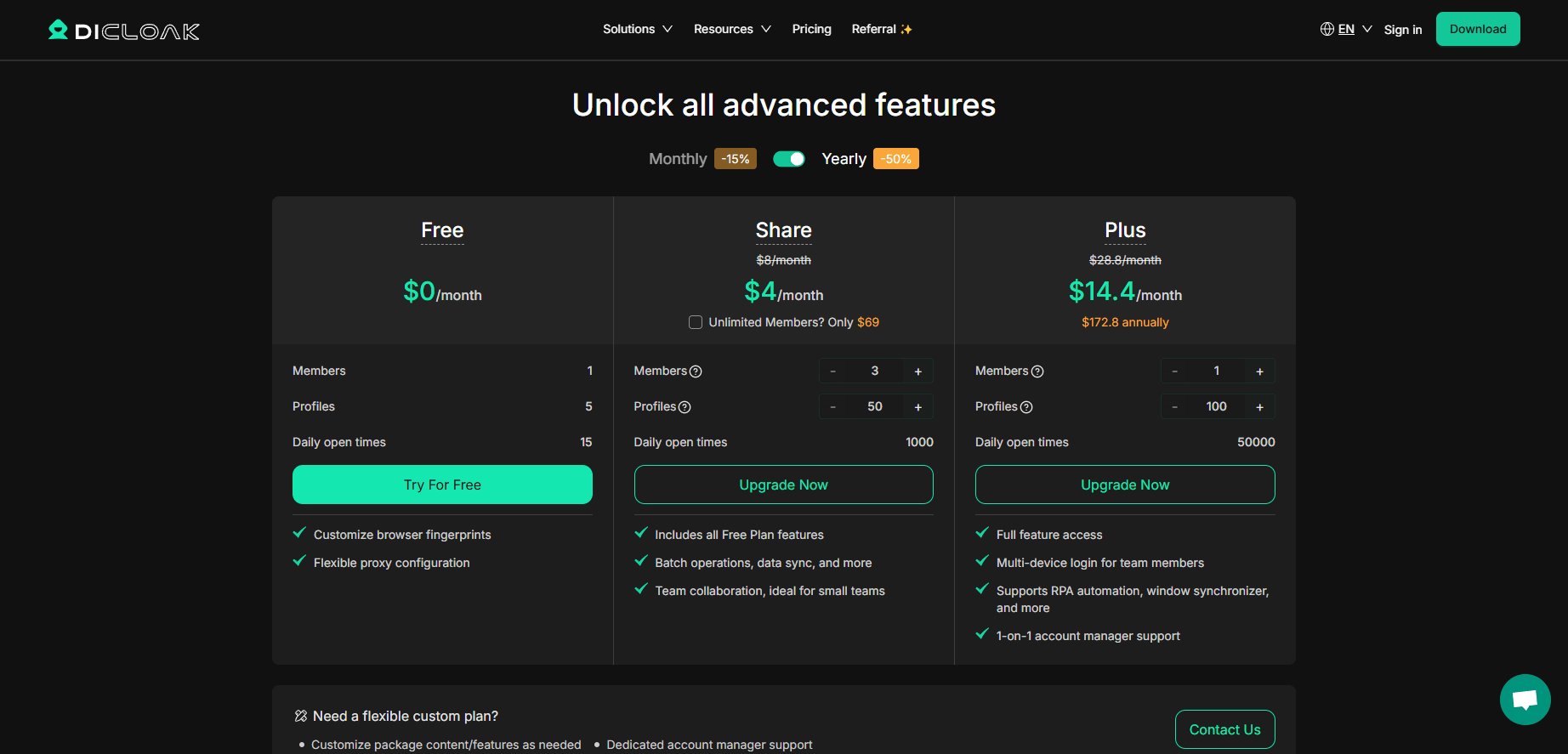 In addition to basic multi-account isolation, DICloak also provides proxy management, team collaboration, automation (RPA), and API integration. This makes it suitable not only for individual users but also for large teams requiring collaborative operations.