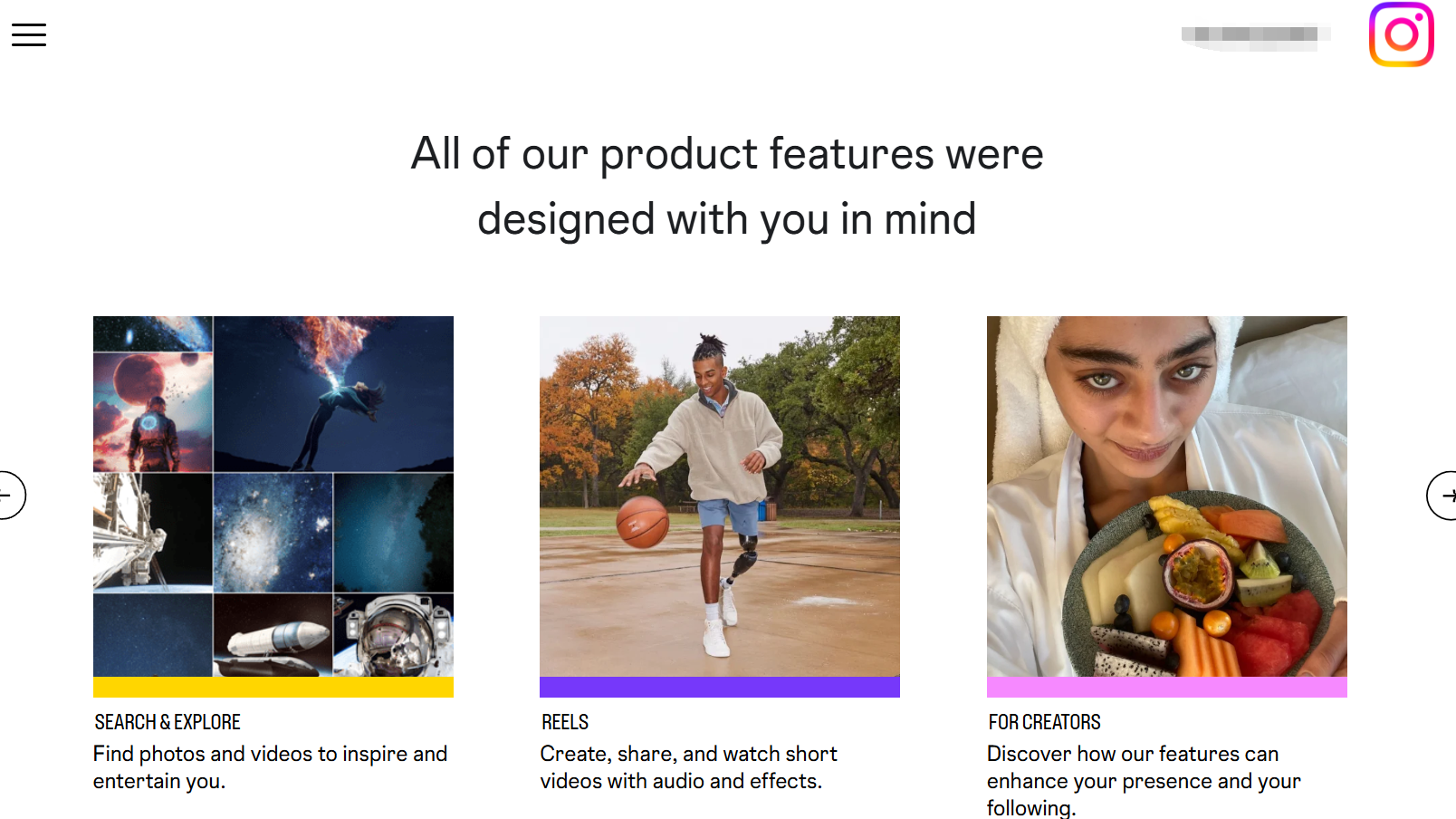 Instagram: a visual social platform (photos, Shorts/Reels, Stories) where discovery is driven by following, search, and recommendations.