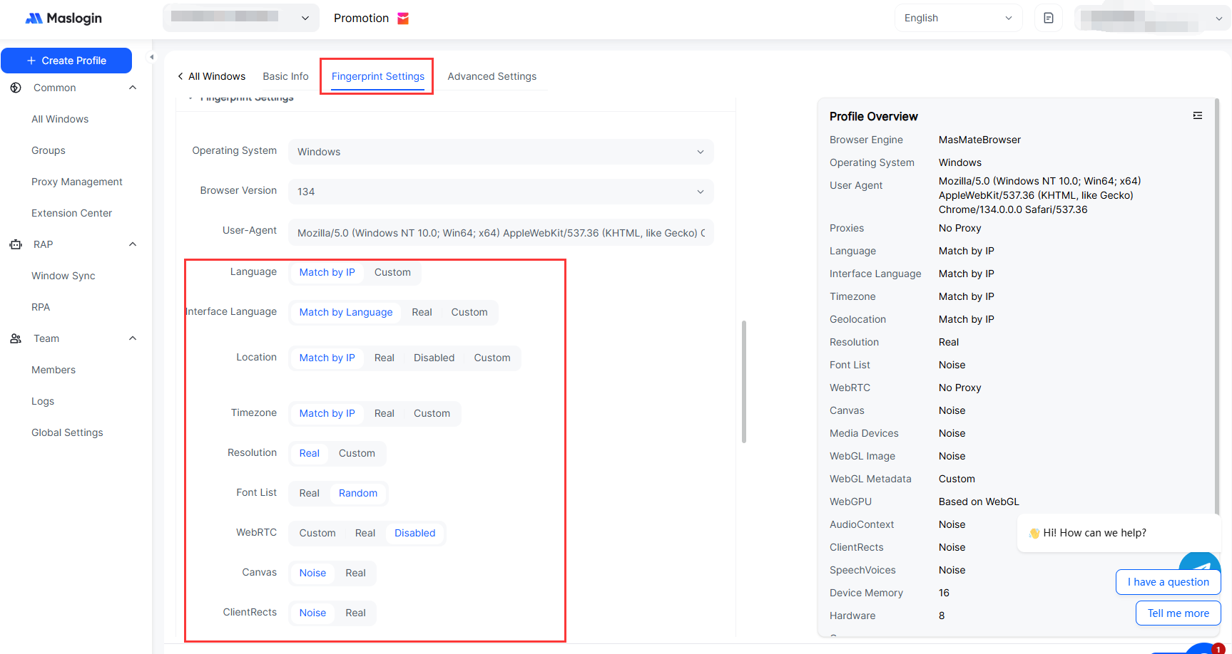 - O MasLogin oferece navegador anti-detecção, com fingerprints, informações do dispositivo e IP independentes para cada conta, reduzindo risco de bloqueio ou vinculação