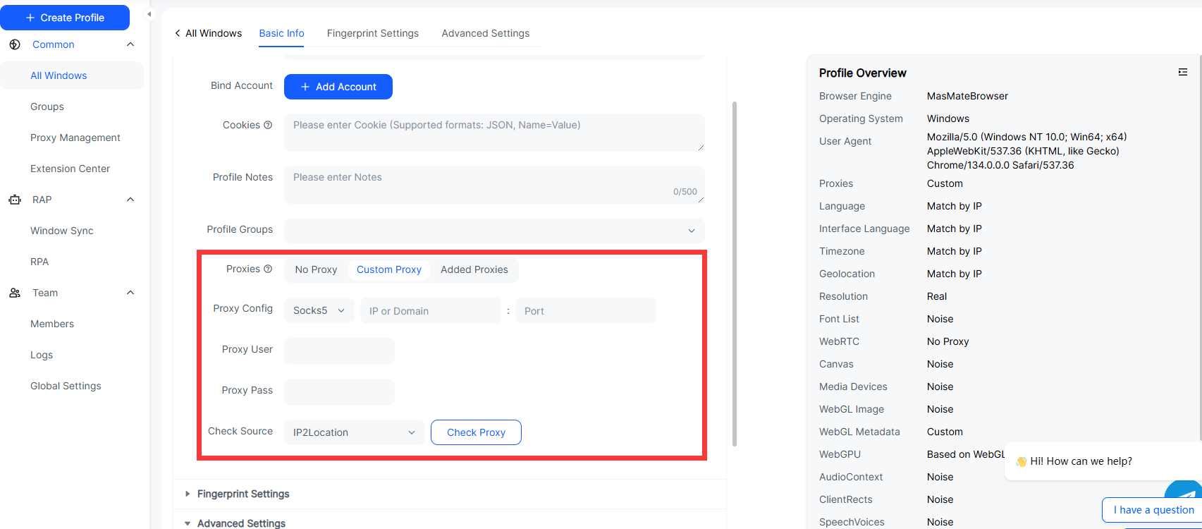 В отличие от обычных встроенных VPN, MasLogin предлагает встроенный IP-прокси, который не только скрывает IP-адрес, но и обеспечивает безопасную изоляцию для работы с несколькими аккаунтами.