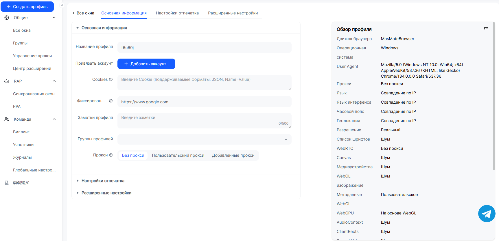 Посмотреть продукт: MasLogin (изолированные среды, RPA/API, командная работа, синхронное управление окнами).