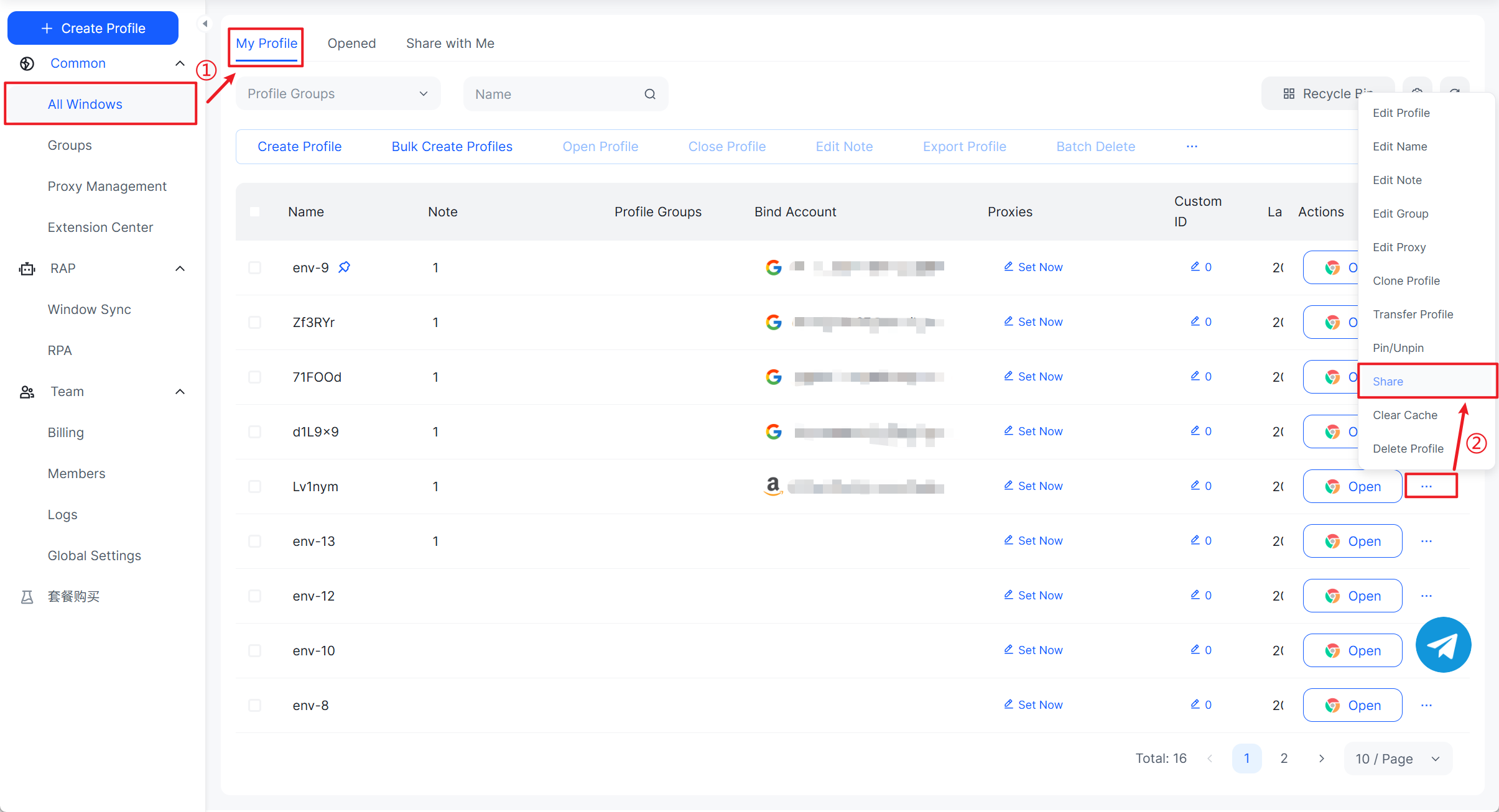 - กลับไปที่ All Windows แล้วกด … → Share ที่สภาพแวดล้อมดังกล่าว