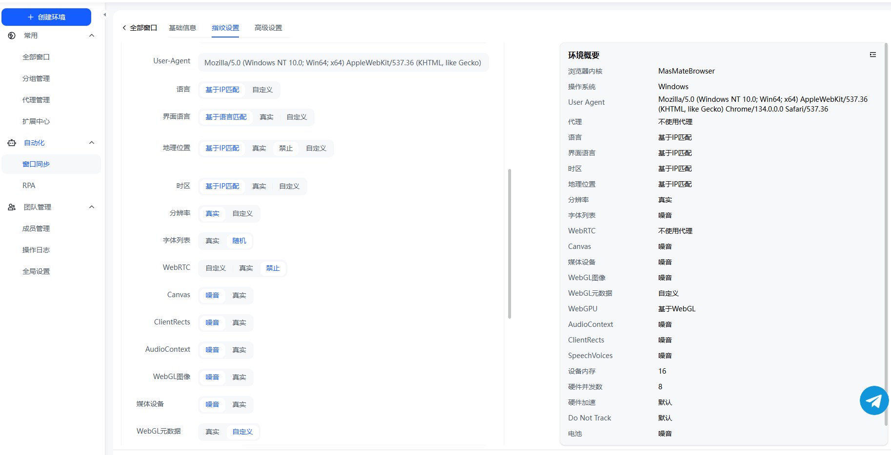 你会发现——每个MasLogin环境的指纹完全不同,且检测结果显示“非唯一”或“随机化指纹”。