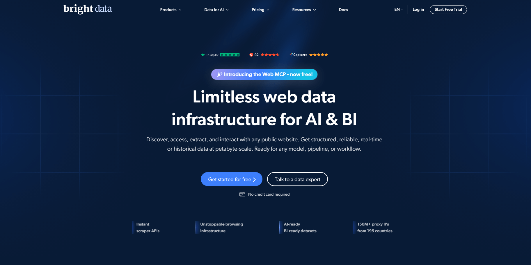 - 独家 Web Unlocker 技术,自动处理验证码与指纹识别