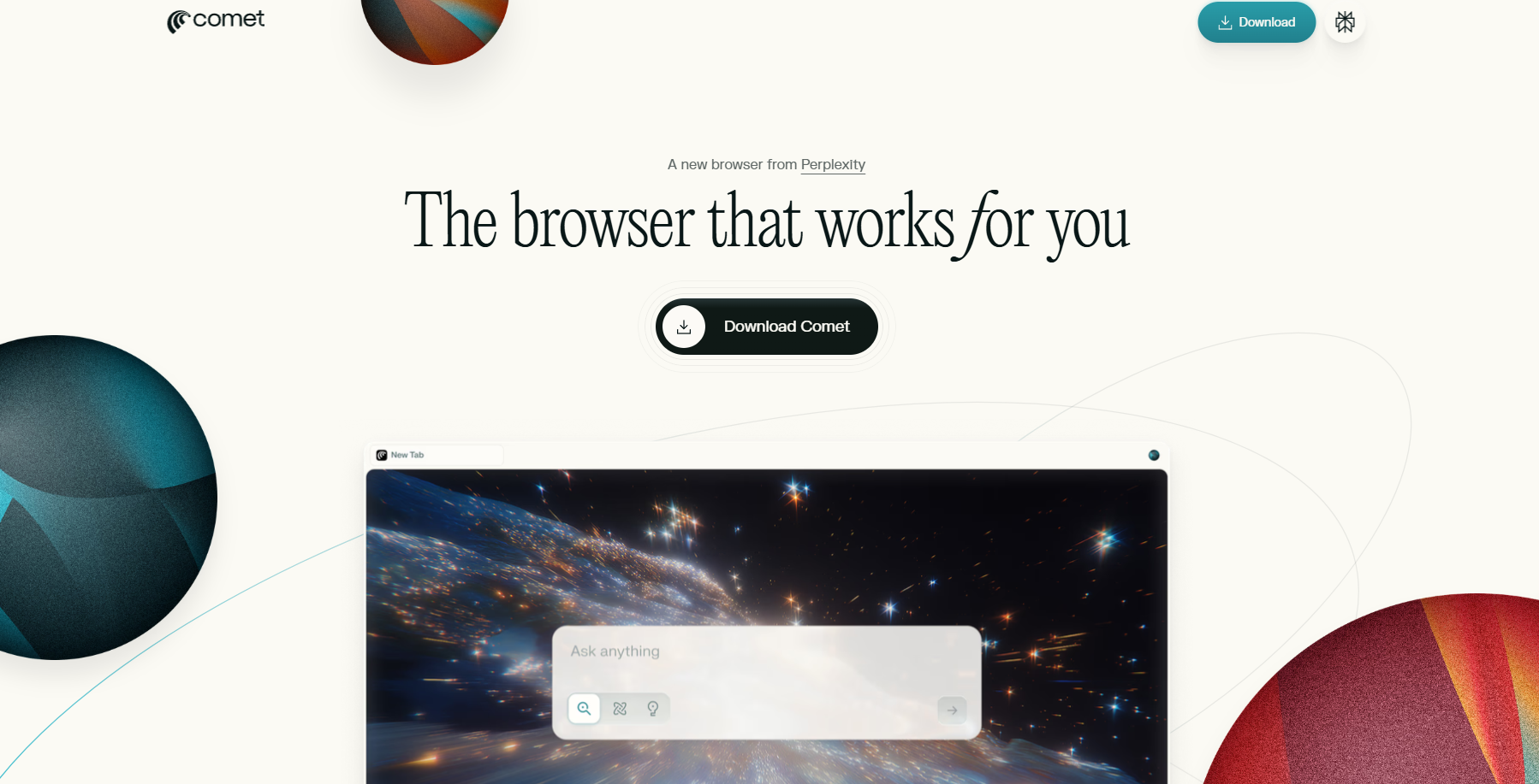 Comet 是由 Perplexity AI 所開發的一款 AI 原生瀏覽器。 (Perplexity AI)
