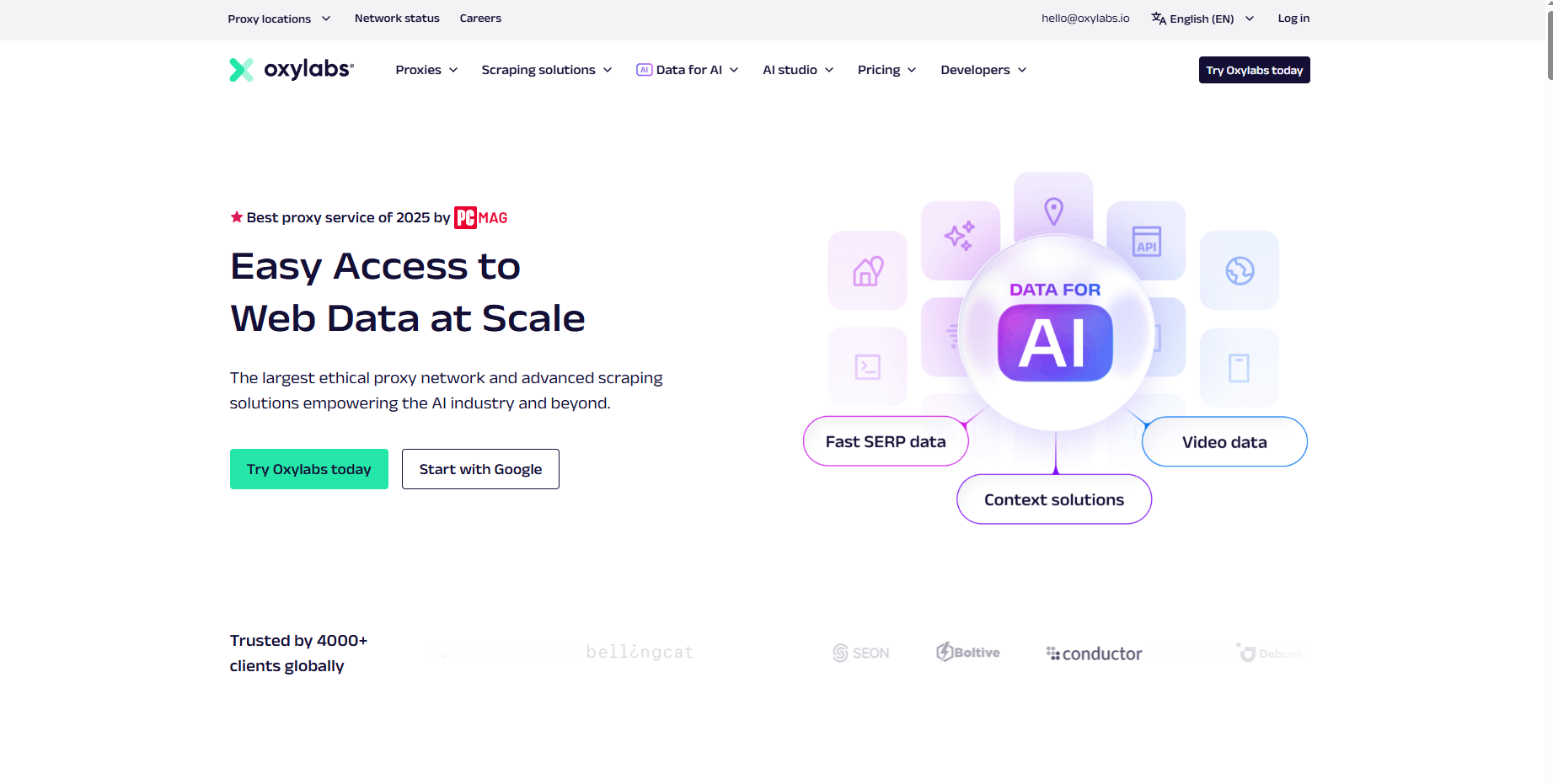 OxyLabs владеет более 100 млн IP-адресов в 195 странах, обеспечивая успешные подключения (99%+) и умное управление ротацией IP.